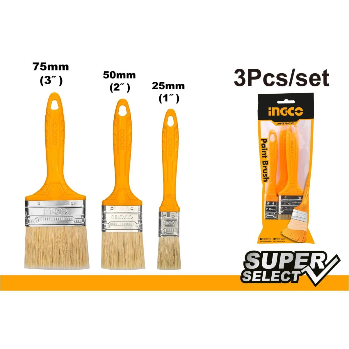 Juego de pinceles de pintura 3pcsPara pintura a base de aceite1 pieza 1 «1 pieza 2 «1 pieza 3 «Manija de plasticoEmbalado en bolsa de plástico