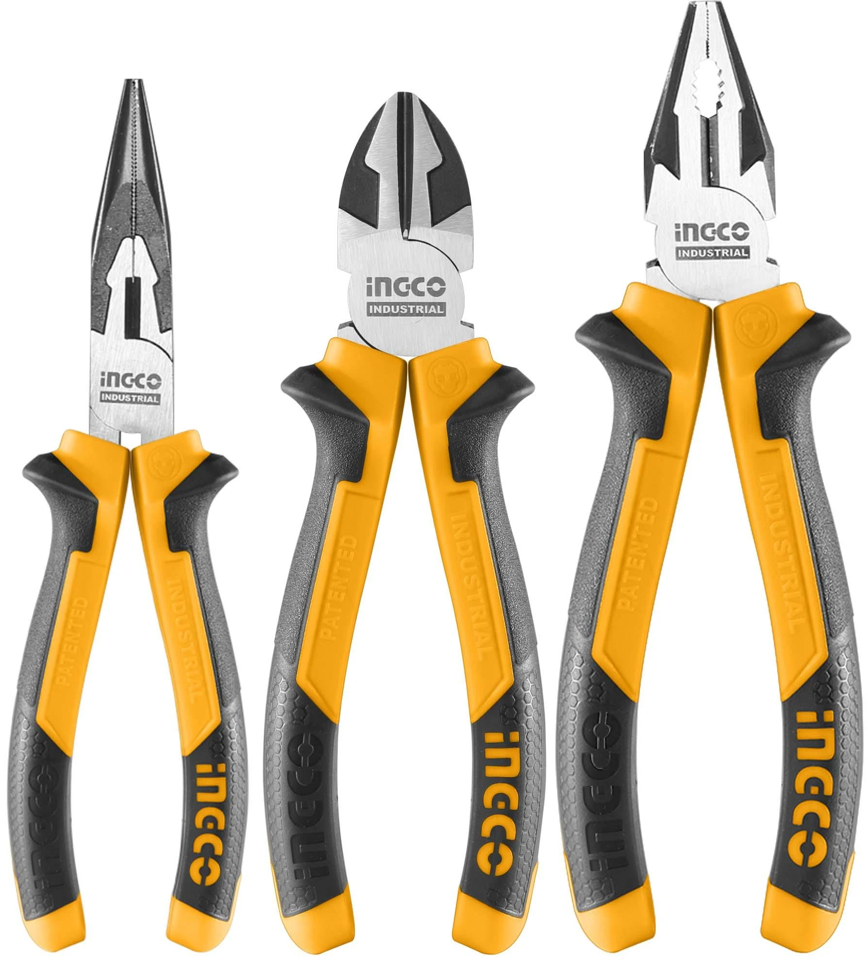 Talla:Alicates combinados de 8 «Alicates de punta larga de 6 «Alicates de corte diagonal de 6 «Cr-V, acabado negro y pulidoMango de dos colores TPREmbalado por percha PP