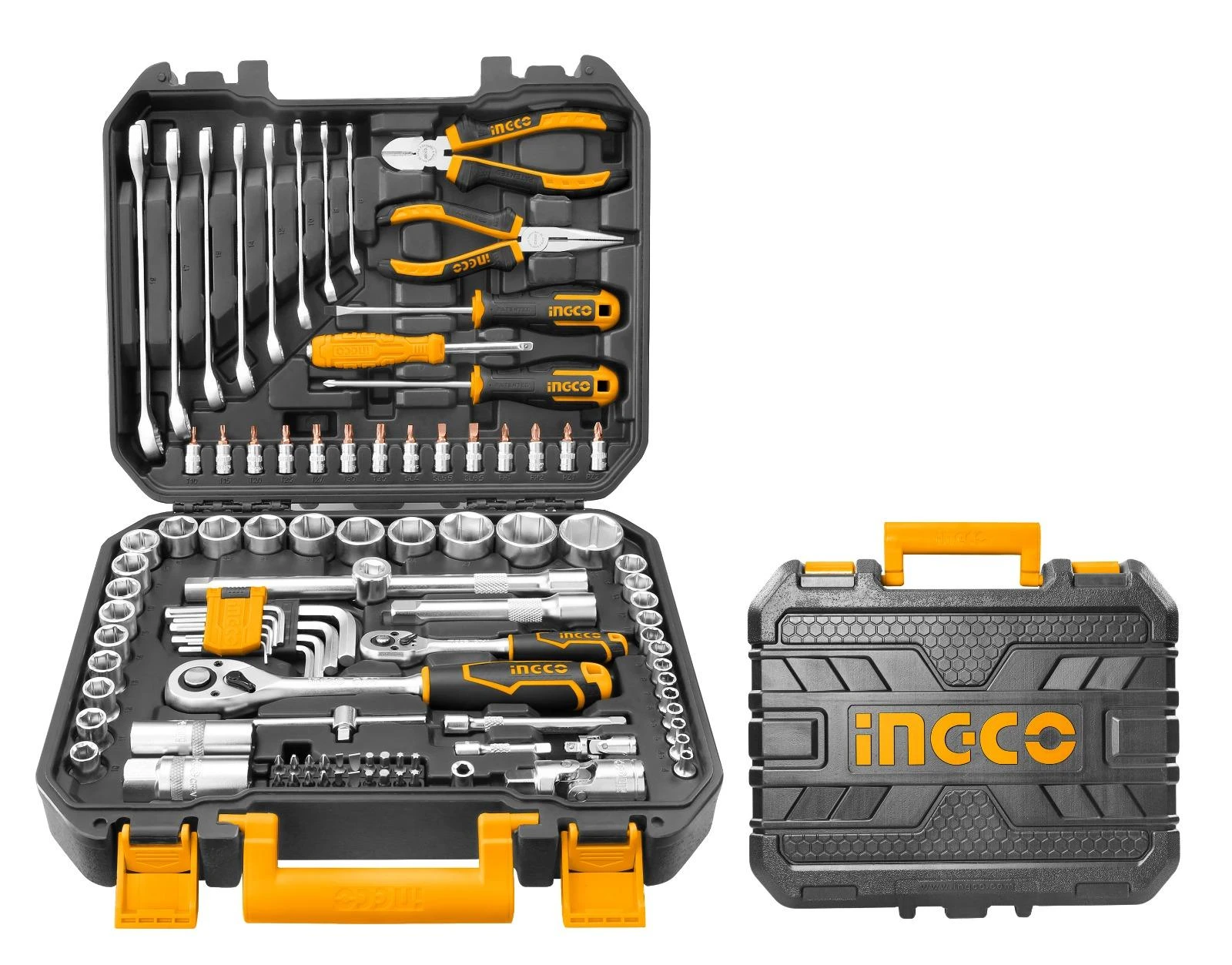Juego de herramientas de 100 piezasIncluir:1 llave de trinquete de 1/2 «, 45 dientesDado hexagonal de 18 piezas 1/2 «: 10-11-12-13-14-15-16-17-18-19-20-21-22-23-24-27-30-32MMBarra de extensión de 2 piezas 1/2 «: 125 mm ?5»? / 250 mm (10 «)1 Pz 1/2 «Dr. Junta universal2 piezas Vaso para bujía 1/2 «Dr.16MM y 21MMAdaptador de tres vías de 1 pieza 1/2 «* 3/8″1 llave de trinquete de 1/4 «, 45 dientesDado hexagonal de 13 piezas de 1/4 «: 4-4.5-5-5.5-6-7-8-9-10-11-12-13-14Barra de extensión de 2 piezas 1/4 «: 50 mm (2») / 100 mm (4 «)1 barra deslizante en «T» de 1/4 «1 Pz 1/4 «Dr. Junta universalLlave combinada de 8 piezas: 6-8-10-12-14-15-17-19MMAlicates de corte diagonal de 1 pieza de 6 «1 pinza de punta larga de 6 «1 destornillador SL5.5 * 100Destornillador PH1 * 100 de 1 piezaZócalo de 14 piezas: T10-T15-T20-T25-T27-T30-T35-SL4-SL5.5-SL6.5-PH1-PH2-PZ1-PZ2Llave hexagonal de 9 piezas 1.5-2-2.5-3-4-5-6-8-10MM20 puntas de destornillador de 1/4 «SL3, SL4, SL5, SL6, PH0, PH1, PH2, PH3, PZ0, PZ1, PZ2, PZ3, T10, T15, T20, T30, H3, H4, H5, H6 25 mmSoporte para puntas de destornillador 1PcsMango giratorio de 1 pieza 1/4 «* 150 mmEmpacado por BMC