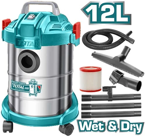 Voltaje: 220V-240V~50/60Hz Potencia de entrada: 800W motor de alambre de cobre tanque metalico Capacidad de polvo: 12L Flujo de aire: 1,7 m3/min. Presión de vacío: 16KPa manguera flexible de 1,5 m Tubo de plástico de tres partes 1 cepillo de plástico para suelo. 1 juego 2 en 1 cepillo Longitud del cable de 2,3 m Filtro HEPA Limpieza en húmedo y en seco Embalado en caja de cartón