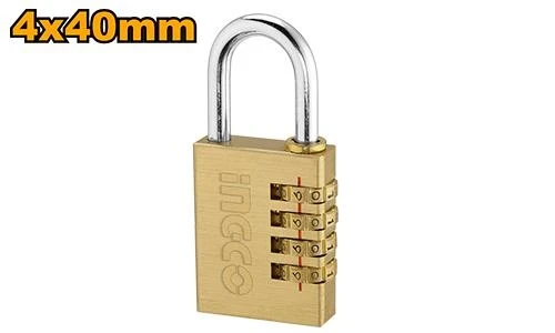 Tamaño: 4x40mmPeso: 207gMaterial del cuerpo de la cerradura: latónNúcleo de bloqueo: cilindro de latón macizoCon 4 ruedas de códigoLa combinación de contraseña se puede personalizar.Envasado en doble blister
