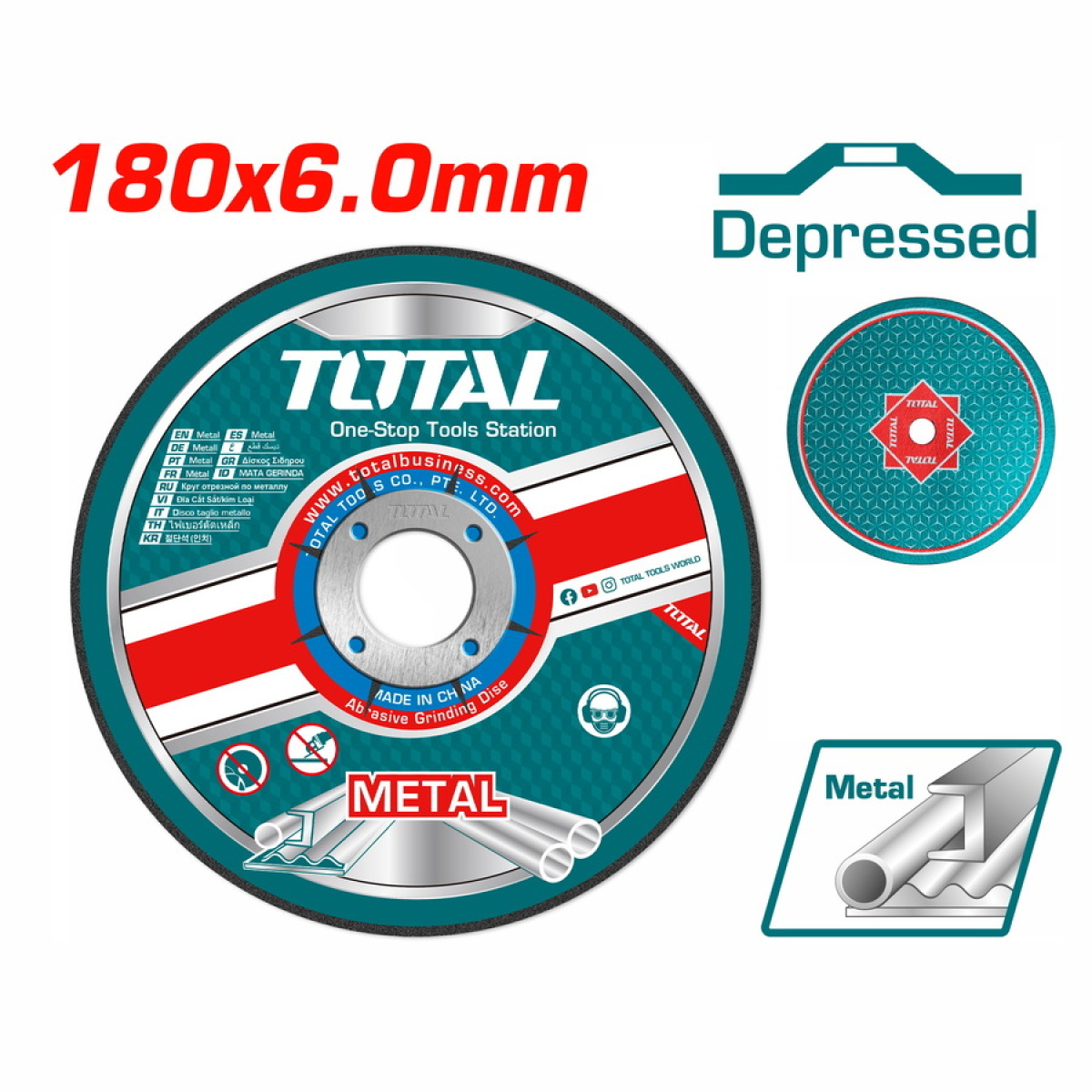 180mm(7″)X6.0mm(1/4″)X22.2mm(7/8″) Depressed centre grinding disc for metal Packed by label