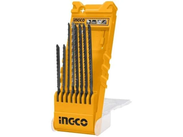 1pza 127D para cortar aluminio1pza JBT101D para cortar madera (superficie limpia)2 pza JBT118B para cortar metal4pza JBT111C para cortar madera (corte rápido)Juego de cuchillas de sierra de calar 8pzaEmbalado por caja de plástico