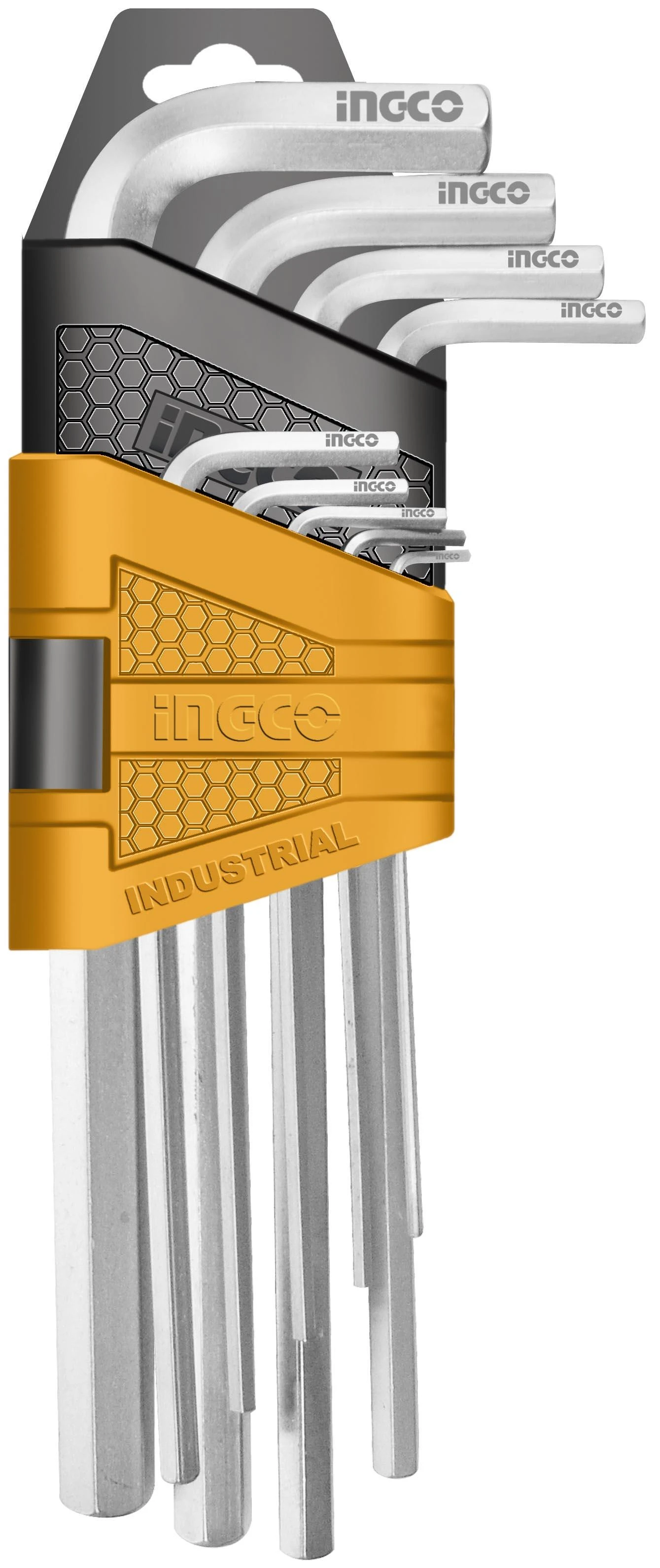 Juego de llaves hexagonales de 9 pzaMaterial Cr-VTamaño 1.5-10mmBrazo largoTratamiento térmico y placa de cromoEmbalado por doble ampolla