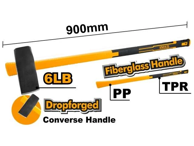 Cuña divisoria (mango converse)Peso: 6 librasmango converseCabeza de martillo forjada en estampaTratamiento térmico, acero al carbono 45#Mango de fibra de vidrio de diseño único.Embalado por etiqueta