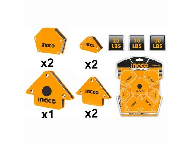 Juego de soporte de soldadura magnética de 7 piezasEspecificaciones:2 uds Mini imán2 imanes de 3.0 in.2 imanes multiángulo de 3.0 in.1 imán de 4.0 in.Fuerza de tracción:Mini 10 libras3″» 25 libras3″» Multiángulo 25Lbs4″» 50 librasDimensiones del producto por pieza:Mini 70*42,5*12mm3″» 120*83*14,4mm3″» Multi-ángulo 117*90*17.1mm4“ 155*102*17.4mmPeso por pieza:Mini 108g3″» 304g3″» Multiángulo 300g4” 591gAnglos:Mini 45°, 90°, 135°3″» y 4″» 45°, 90°, 135°3″» Multi-ángulo 30°,45°,75°,105°,120°,135°Material: imán y acero.Envasado en doble blister