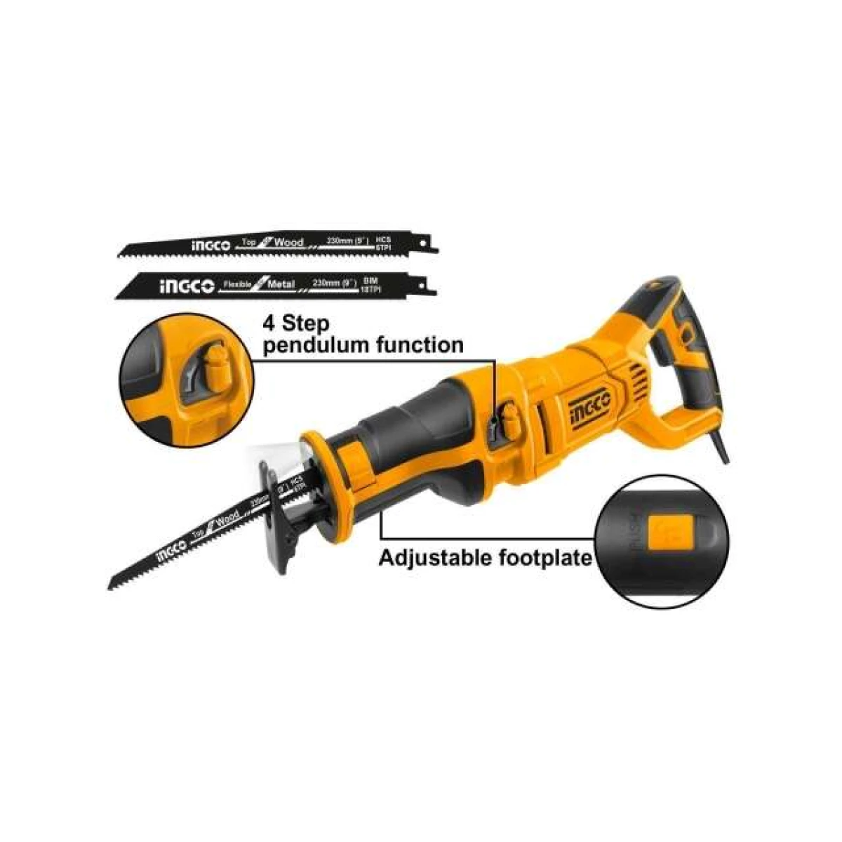 Voltaje: 220-240V~50/60HzPotencia de entrada: 1200WVelocidad sin carga: 1000 ~ 2800 rpmProfundidad de corte máx.: Madera: 210 mm Acero: 20 mm Aluminio: 10 mmControl de velocidad variableLuz de trabajo integradaFunción de péndulo de 4 pasosMandril de cambio de hoja SDSCon 1 hoja de sierra de metal.Con 1 hoja de sierra para madera.Con 1 juego de escobillas de carbón adicionalesEmbalado por caja de color